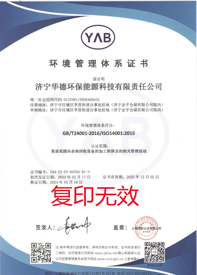 環(huán)境管理體系證書...